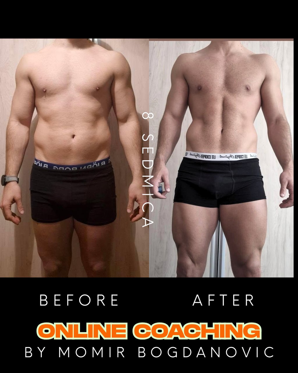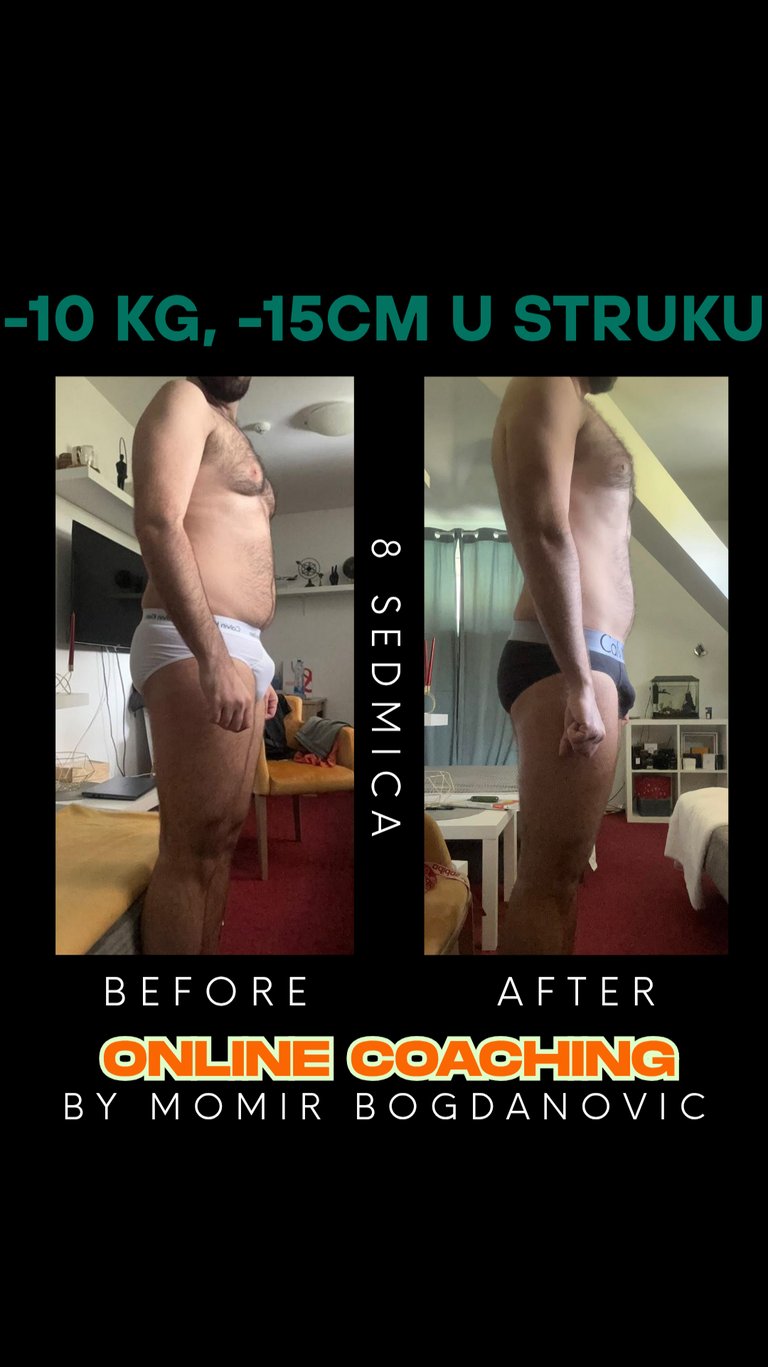 Međutim, sve sam okrenuo naopačke u svoju korist. Informisao se oko ishrane na pravi način i napokon naučio da sam sebi sastavim program koji je održiv cijele godine i gdje nema gladovanja, i krenuo da radim 4 težinska treninga sedmično. Imao sam sistem hrane i treninga koji mi je sa skoro 120 kg, oborio kilažu za 31 kg, tj na idealnu. Od prve slike, do poslednje, prošlo je 365 dana tačno ( 1 godinu ). Da, dva različita tijela. Bolovi od diskushernija su nestali jer je muskulatura ojačala pravim vjezbama u teretani, holesterol spao na normalu, štitna počela da radi normalno, jetra na ultrazvuku više nije bila masna, bolovi u prsima su nestali vremenom. Izliječio sam sam dušu i tijelo, ishranom i treningom. Životna energija mi se vratila, a ja sam ušao u najbolju formu svog života.